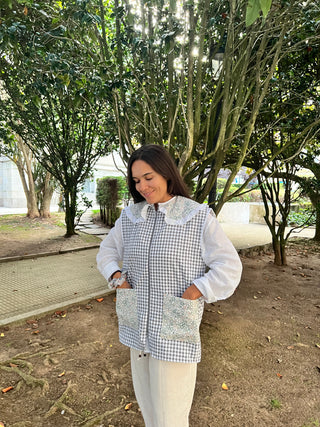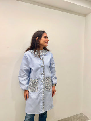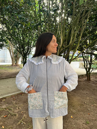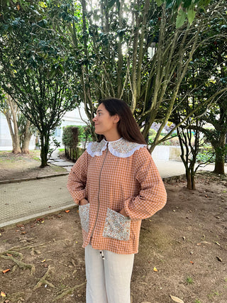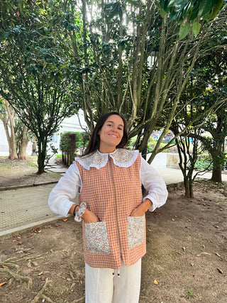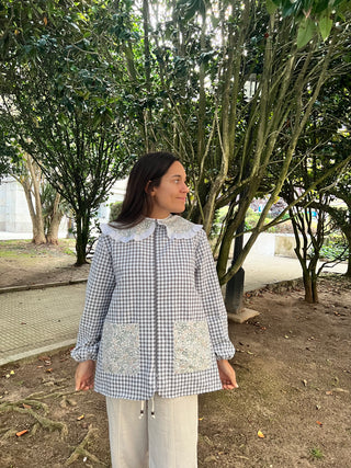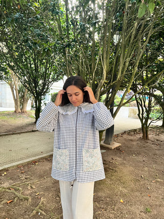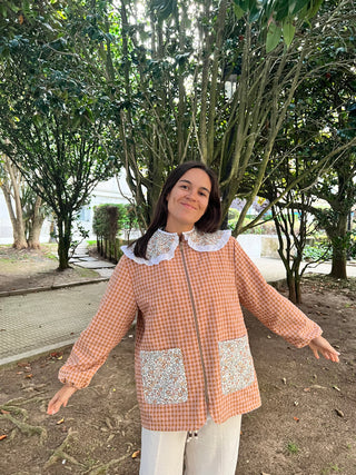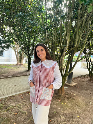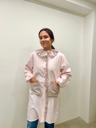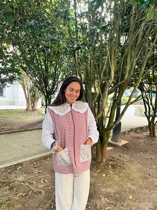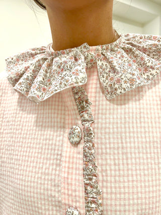 Bata botones cuello arlequín Vichy rosa